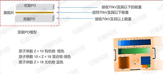 國(guó)際上對(duì)原子序數(shù)進(jìn)行了劃分,原子系數(shù)小于10的稱為有機(jī)物,賦予橙色;原子序數(shù)在10和18之間的是混合物,給與綠色;原子序數(shù)大于18的是無(wú)機(jī)物,給藍(lán)色。根據(jù)這樣的標(biāo)準(zhǔn),安檢機(jī)軟件設(shè)置時(shí),就需要想辦法來(lái)區(qū)分原子序數(shù)讓機(jī)器去識(shí)別。為了區(qū)分,所以在安檢機(jī)上面會(huì)安裝雙能芯片,一個(gè)高能,一個(gè)低能,通過(guò)過(guò)濾裝置把低能射線過(guò)濾掉。讓高能芯片獲取他的高等信息,在這個(gè)基礎(chǔ)上,根據(jù)低能高能來(lái)進(jìn)行區(qū)分,然后進(jìn)行有機(jī)物、無(wú)機(jī)物、混合物的著色。