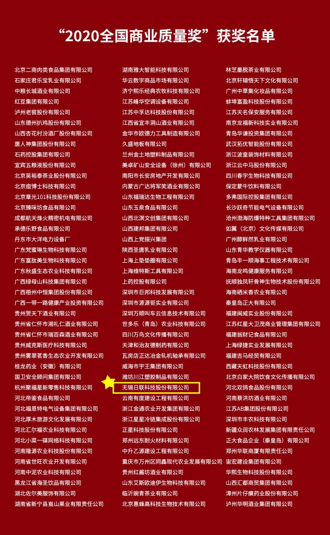 根據(jù)《全國商業(yè)質(zhì)量獎(jiǎng)評(píng)審管理辦法》(試行)有關(guān)規(guī)定,經(jīng)企業(yè)自愿申報(bào)、各地商業(yè)主管部門和行業(yè)協(xié)會(huì)推薦,全國商業(yè)質(zhì)量獎(jiǎng)評(píng)審辦公室初步形式審查,并依據(jù)國家標(biāo)準(zhǔn)《卓越績效評(píng)價(jià)準(zhǔn)則》(GB/Z19580—2012)和《卓越績效評(píng)價(jià)準(zhǔn)則實(shí)施指南》(GB/Z19579—2012)技術(shù)文件,組織專家評(píng)審及獲獎(jiǎng)名單公示,決定授予無錫日聯(lián)科技股份有限公司等126家單位“2020年全國商業(yè)質(zhì)量獎(jiǎng)”。